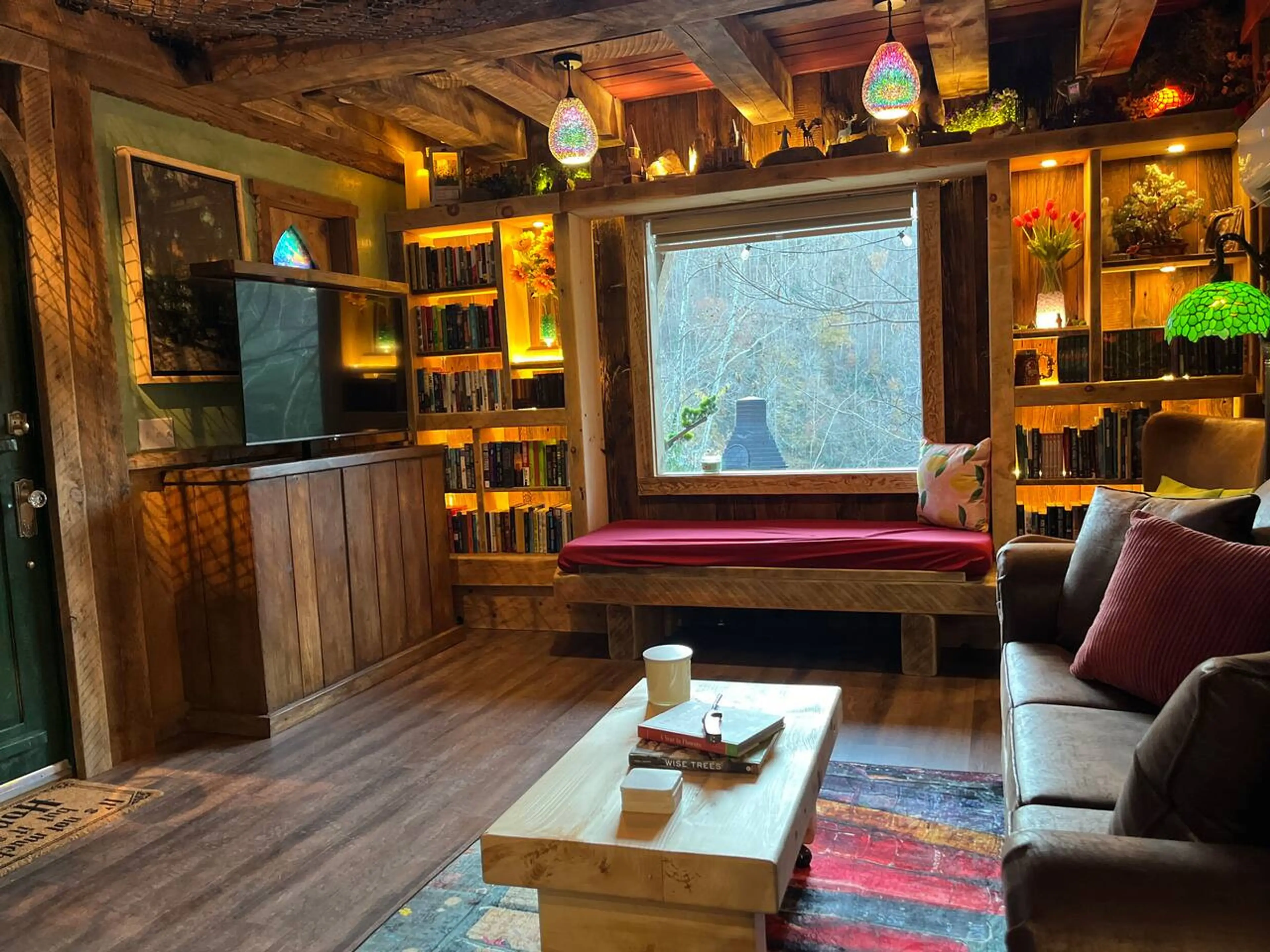 Step into the Wizard’s Library House at Mountain Shire—an enchanting escape where wizarding magic blends seamlessly with modern luxury. Explore breathtaking illuminated book displays, relax in the cozy lounge with a massive Roku TV, and unwind in the sleek, spa-inspired bathroom. Every detail of the...